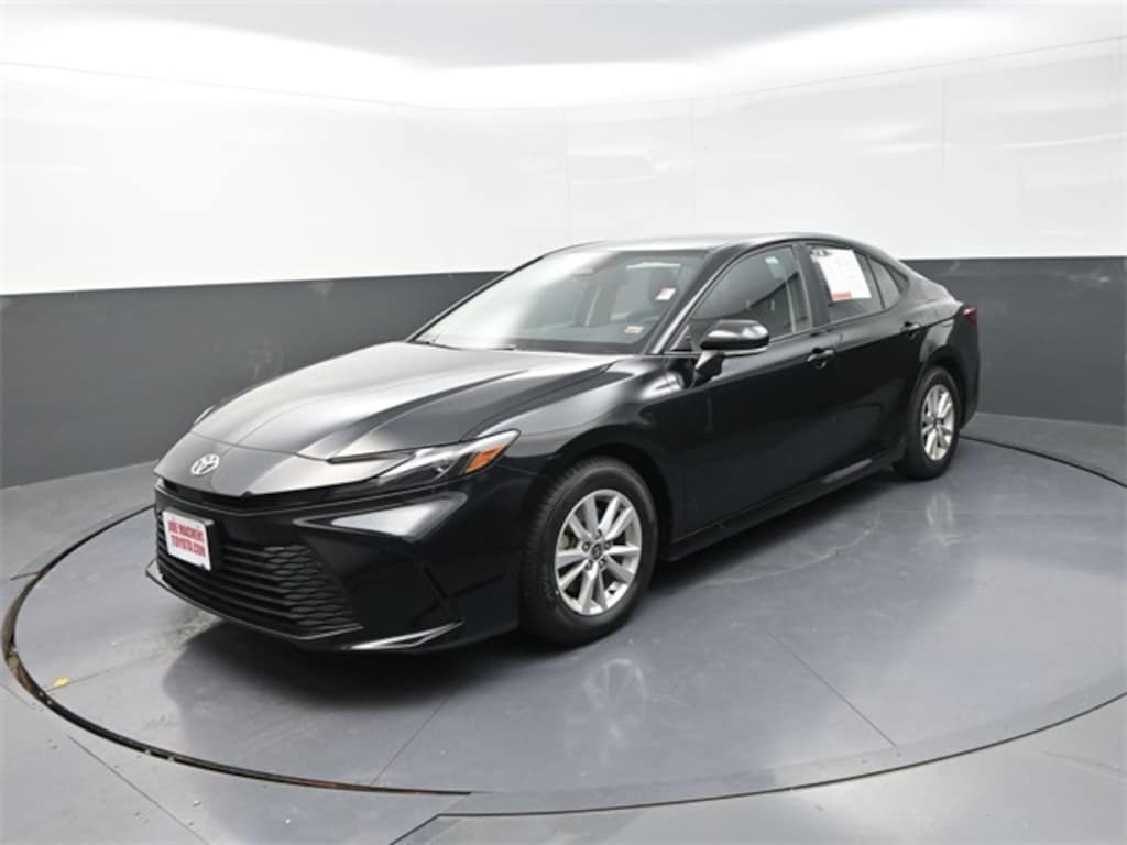 CARFAX One-Owner. Midnight Black Metallic 2025 Toyota Camry LE FWD eCVT 2.5L 4-Cylinder 16V DOHC 2.5L 4-Cylinder 16V DOHC, Black w/Fabric Seat Trim, ABS brakes, Alloy wheels, Electronic Stability Control, Front dual zone A/C, Heated door mirrors, Illuminated entry, Low tire pressure warning, Remote keyless entry, Traction control.