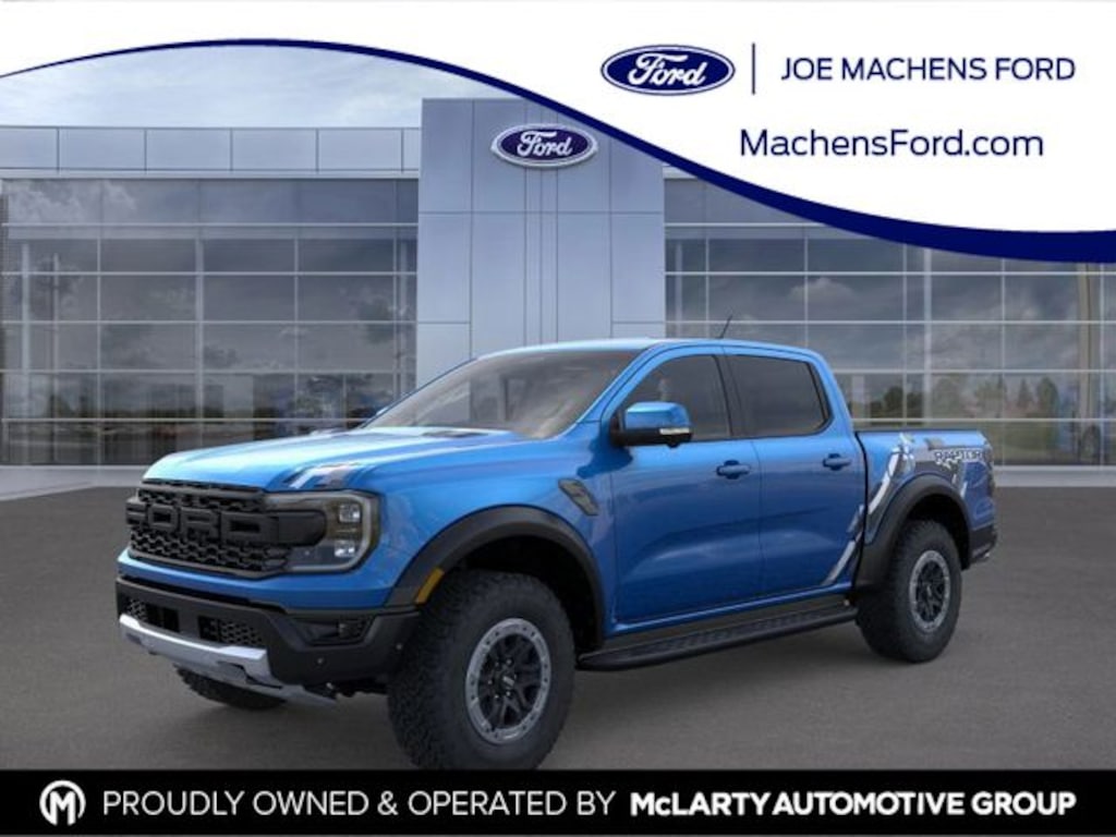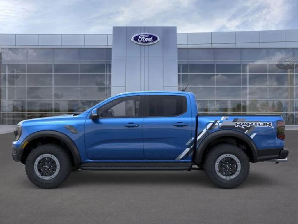 2025 Ford Ranger Raptor 4WD 3.0L EcoBoost V6 10-Speed Automatic Blue Metallic 10 Speakers, 4-Wheel Disc Brakes, 4.27 Axle Ratio, ABS brakes, Air Conditioning, Alloy wheels, AM/FM radio: SiriusXM, Auto High-beam Headlights, Auto-dimming Rear-View mirror, Automatic temperature control, Brake assist, Compass, Delay-off headlights, Driver door bin, Driver vanity mirror, Dual front impact airbags, Dual front side impact airbags, Electronic Stability Control, Emergency communication system: SYNC 4 911 Assist, Front anti-roll bar, Front Bucket Seats, Front Center Armrest, Front dual zone A/C, Front fog lights, Front reading lights, Front wheel independent suspension, Fully automatic headlights, Garage door transmitter, Heated door mirrors, Heated front seats, Heated steering wheel, Illuminated entry, Leather Shift Knob, Leather steering wheel, Leather-Trimmed Front Heated Bucket Seats, Low tire pressure warning, Memory seat, Navigation system: Connected Navigation, Occupant sensing airbag, Outside temperature display, Overhead airbag, Overhead console, Panic alarm, Passenger door bin, Passenger vanity mirror, Power door mirrors, Power driver seat, Power passenger seat, Power steering, Power windows, Radio: B&O Sound System by Bang & Olufsen, Rain sensing wipers, Rear reading lights, Rear seat center armrest, Rear step bumper, Rear window defroster, Remote keyless entry, Security system, SiriusXM Satellite Radio, Speed control, Speed-sensing steering, Steering wheel mounted audio controls, SYNC 4A, Telescoping steering wheel, Tilt steering wheel, Traction control, Trip computer, Turn signal indicator mirrors, Variably intermittent wipers, Voltmeter, Wheels: 17" Gray-Painted Aluminum.