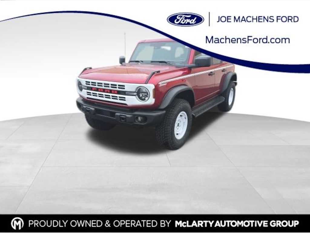 2026 Ford Bronco Heritage Edition 4WD 2.7L EcoBoost V6 10-Speed Automatic Ruby Red Apple Carplay/Android Auto, Cruise Control, Heated Seats, Bluetooth, Backup/ Rearview Camera, 4-Wheel Disc Brakes, 7 Speakers, ABS brakes, Air Conditioning, AM/FM radio: SiriusXM with 360L, AM/FM Stereo, Auto High-beam Headlights, Auto-dimming Rear-View mirror, Automatic temperature control, Brake assist, Compass, Connected Navigation, Convertible HardTop, Convertible roof lining, Delay-off headlights, Driver door bin, Driver vanity mirror, Dual front impact airbags, Dual front side impact airbags, Electronic Stability Control, Emergency communication system: 911 Assist, Equipment Group 662A Mid Package, Exterior Parking Camera Rear, Ford Connectivity Package (1-Year Included), Front anti-roll bar, Front Bucket Seats, Front Center Armrest, Front dual zone A/C, Front fog lights, Front reading lights, Front wheel independent suspension, Fully automatic headlights, Glass rear window, Heated door mirrors, Heated front seats, Heated steering wheel, Illuminated entry, Integrated roll-over protection, Low tire pressure warning, Navigation system: Connected Navigation, Occupant sensing airbag, Outside temperature display, Overhead airbag, Overhead console, Panic alarm, Passenger door bin, Passenger vanity mirror, Plaid Cloth Front Heated Bucket Seats, Power door mirrors, Power steering, Power windows, Radio data system, Rear window defroster, Rear window wiper, Remote keyless entry, Security system, SiriusXM with 360L, Speed control, Split folding rear seat, Steering wheel mounted audio controls, SYNC 4, Tachometer, Telescoping steering wheel, Tilt steering wheel, Traction control, Trailer Tow Package, Trip computer, Variably intermittent wipers, Wheels: 17" Unique White.