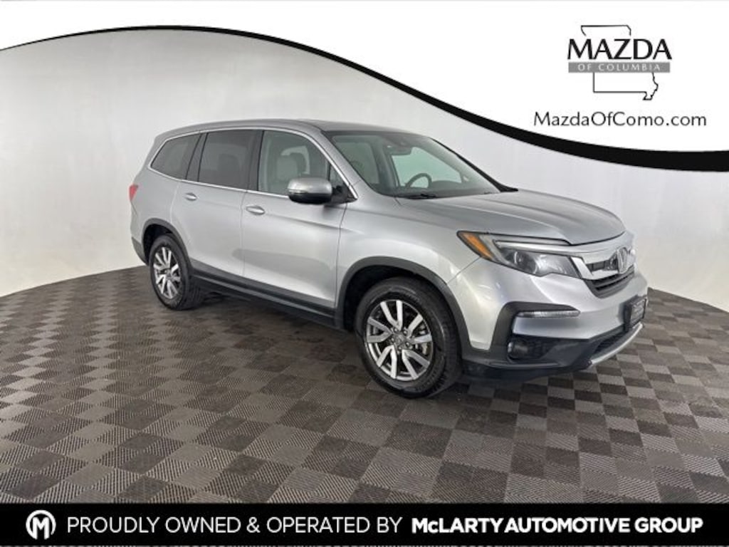 Lunar Silver Metallic 2020 Honda Pilot EX-L 3.5L V6 24V SOHC i-VTEC 6-Speed Automatic FWD 3rd row seats: split-bench, 4-Wheel Disc Brakes, 7 Speakers, ABS brakes, Air Conditioning, Alloy wheels, AM/FM radio: SiriusXM, Apple CarPlay/Android Auto, Auto High-beam Headlights, Auto-dimming Rear-View mirror, Automatic temperature control, Blind Spot Information (BSI) System warning, Delay-off headlights, Electronic Stability Control, Exterior Parking Camera Rear, Forward collision: Collision Mitigation Braking System (CMBS) + FCW mitigation, Front Bucket Seats, Front Center Armrest, Front dual zone A/C, Fully automatic headlights, Heated Front Bucket Seats, Heated front seats, Lane departure: Lane Keeping Assist System (LKAS) active, Leather Seat Trim, Memory seat, Power driver seat, Power Liftgate, Power moonroof, Power passenger seat, Power windows, Radio: 215-Watt Audio System, Rear air conditioning, Rear window defroster, Reclining 3rd row seat, Remote keyless entry, Split folding rear seat, Steering wheel mounted audio controls.